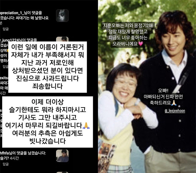 박슬기 또한 자신의 SNS를 통해 “지훈 오빠는 지금도 너무 좋아하는 오라버니”라며 해명에 나섰습니다.